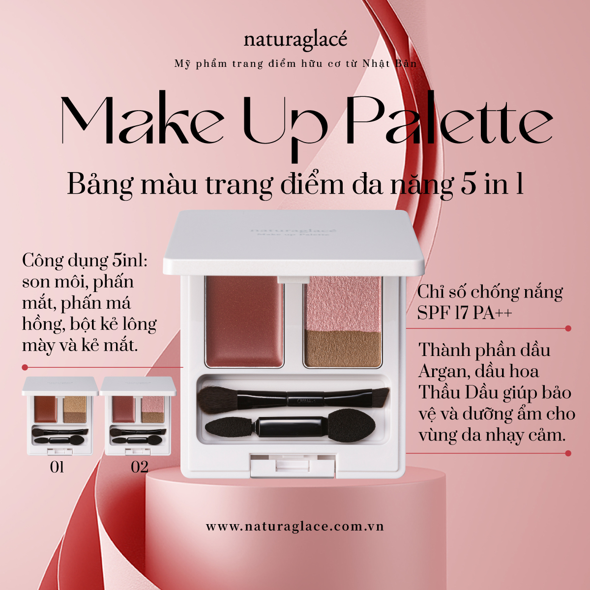 Với màu sắc được tạo nên từ các chiết xuất thực vật, bộ trang điểm má hồng - phấn mắt hữu cơ của naturaglacé không chỉ mang tới nét đẹp tươi sáng, rạng rỡ đầy thu hút mà còn nâng niu, bảo vệ làn da nhạy cảm của phái đẹp mỗi ngày.
