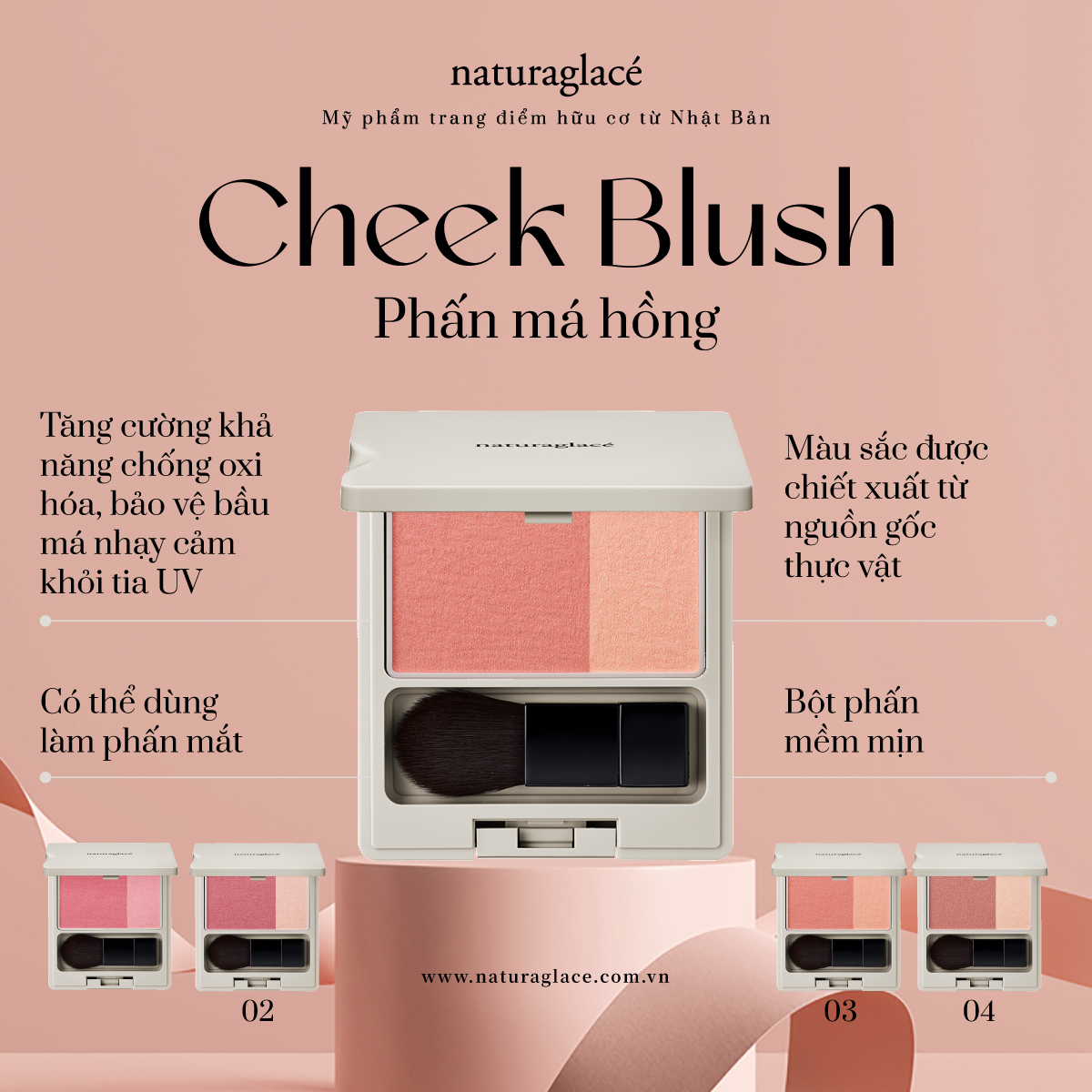 Với màu sắc được tạo nên từ các chiết xuất thực vật, bộ trang điểm má hồng - phấn mắt hữu cơ của naturaglacé không chỉ mang tới nét đẹp tươi sáng, rạng rỡ đầy thu hút mà còn nâng niu, bảo vệ làn da nhạy cảm của phái đẹp mỗi ngày.