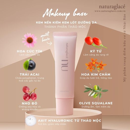 naturaglacé Nu Makeup Base che phủ một cách tự nhiên các khuyết điểm và vùng da không đều màu, đồng thời nâng tông da sáng hơn. Mang đến lớp nền căng bóng và trong suốt tự nhiên.