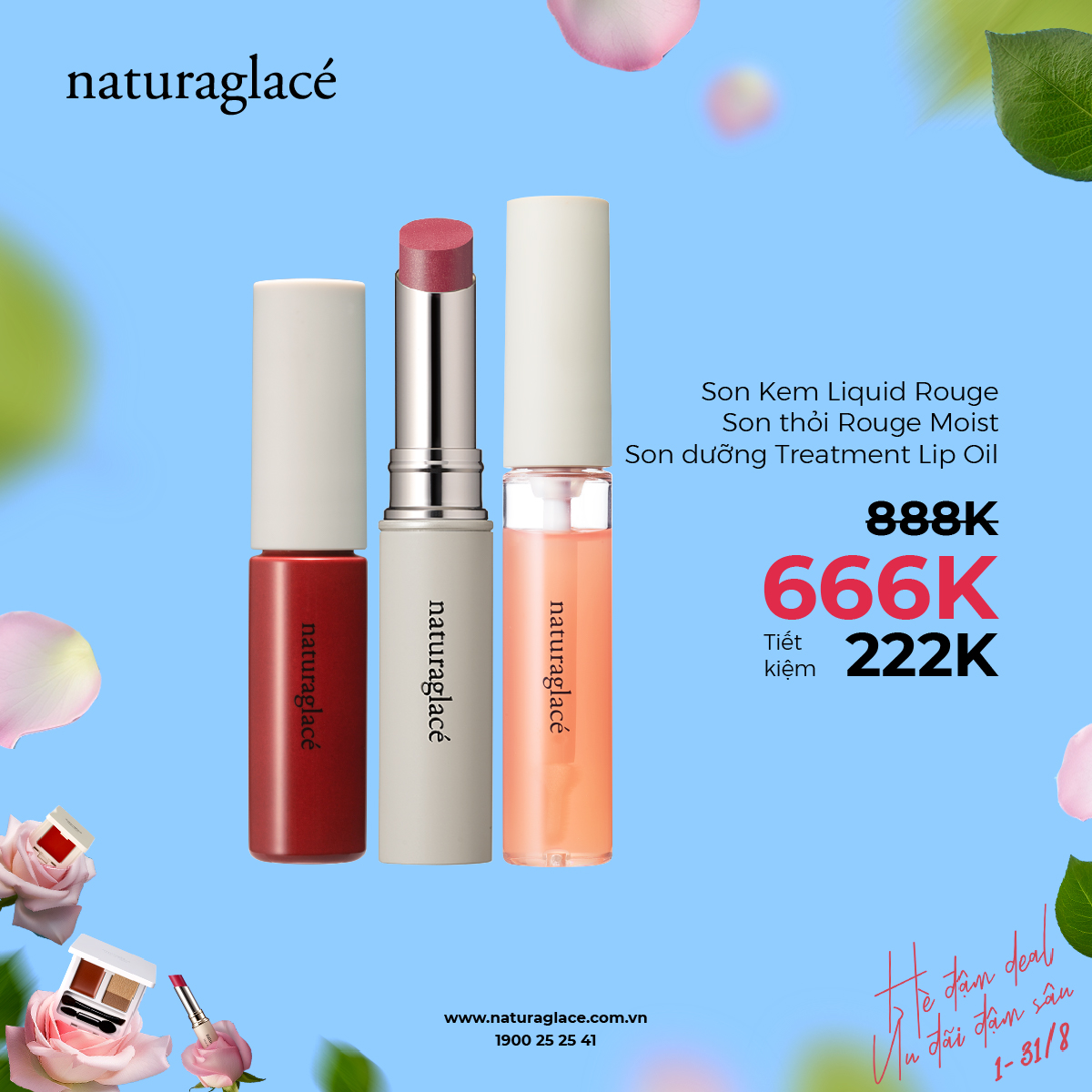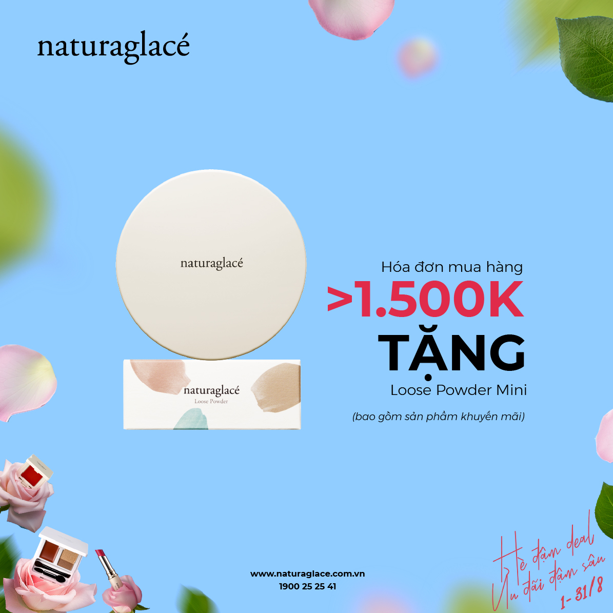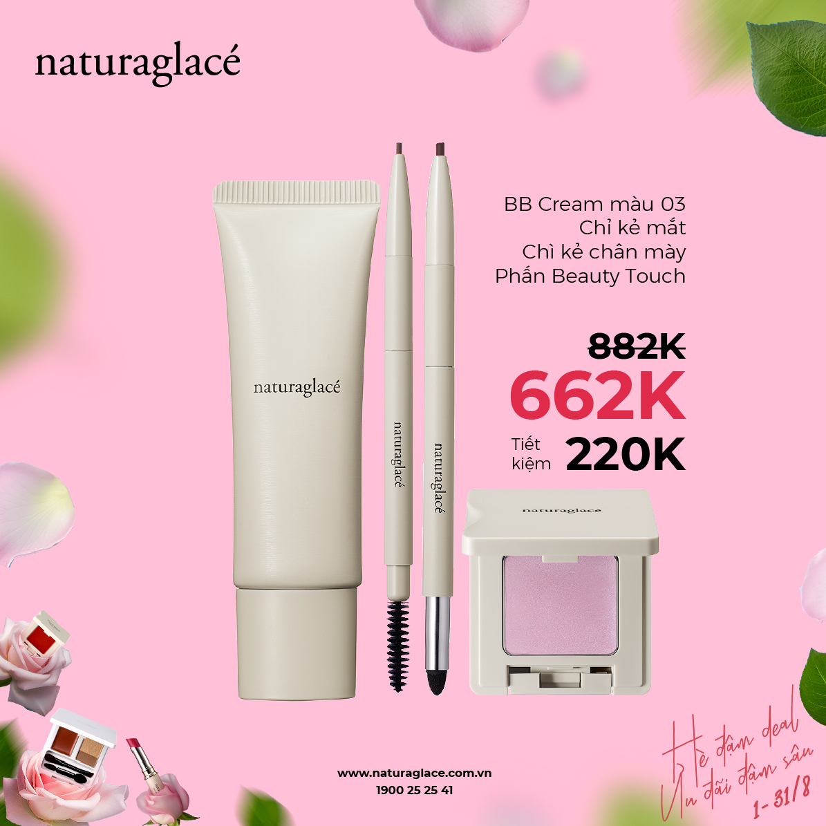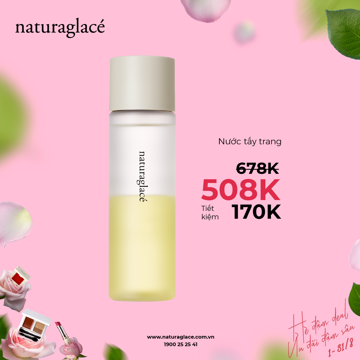 Tháng 8 này cùng naturaglacé tỏa sáng rực rỡ với chương trình ưu đãi "Hè Đậm Deal - Ưu Đãi Đậm Sâu". Cùng làm đẹp và bảo vệ làn da của bạn bằng những sản phẩm hữu cơ, an toàn và thân thiện với môi trường.
