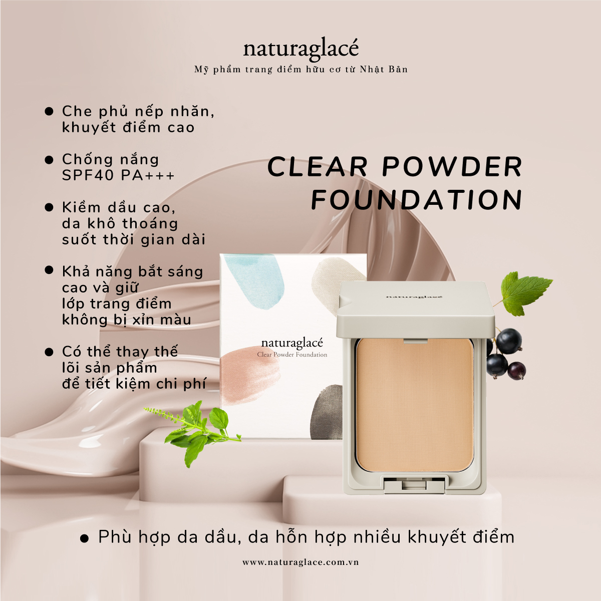 naturaglacé - thương hiệu mỹ phẩm trang điểm cao cấp của Nhật Bản, với bảng thành phần lành tính từ các nguyên liệu hữu cơ được chứng nhận JAS.