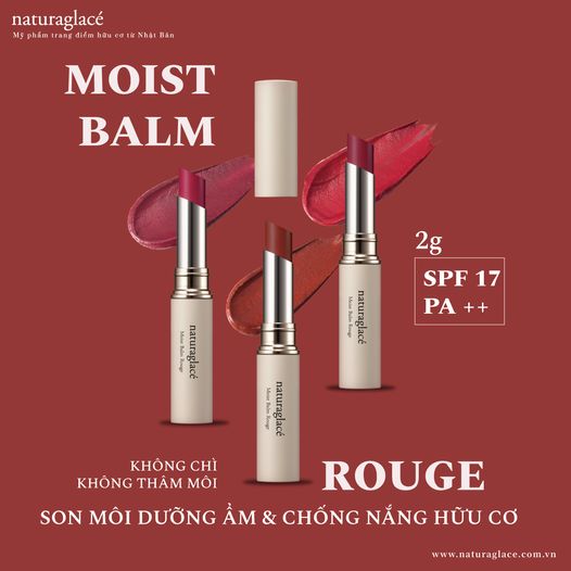 Son môi Moist Balm Rouge là son môi hữu cơ giúp dưỡng ẩm & chống nắng với chỉ số chống nắng SPF 17 PA++