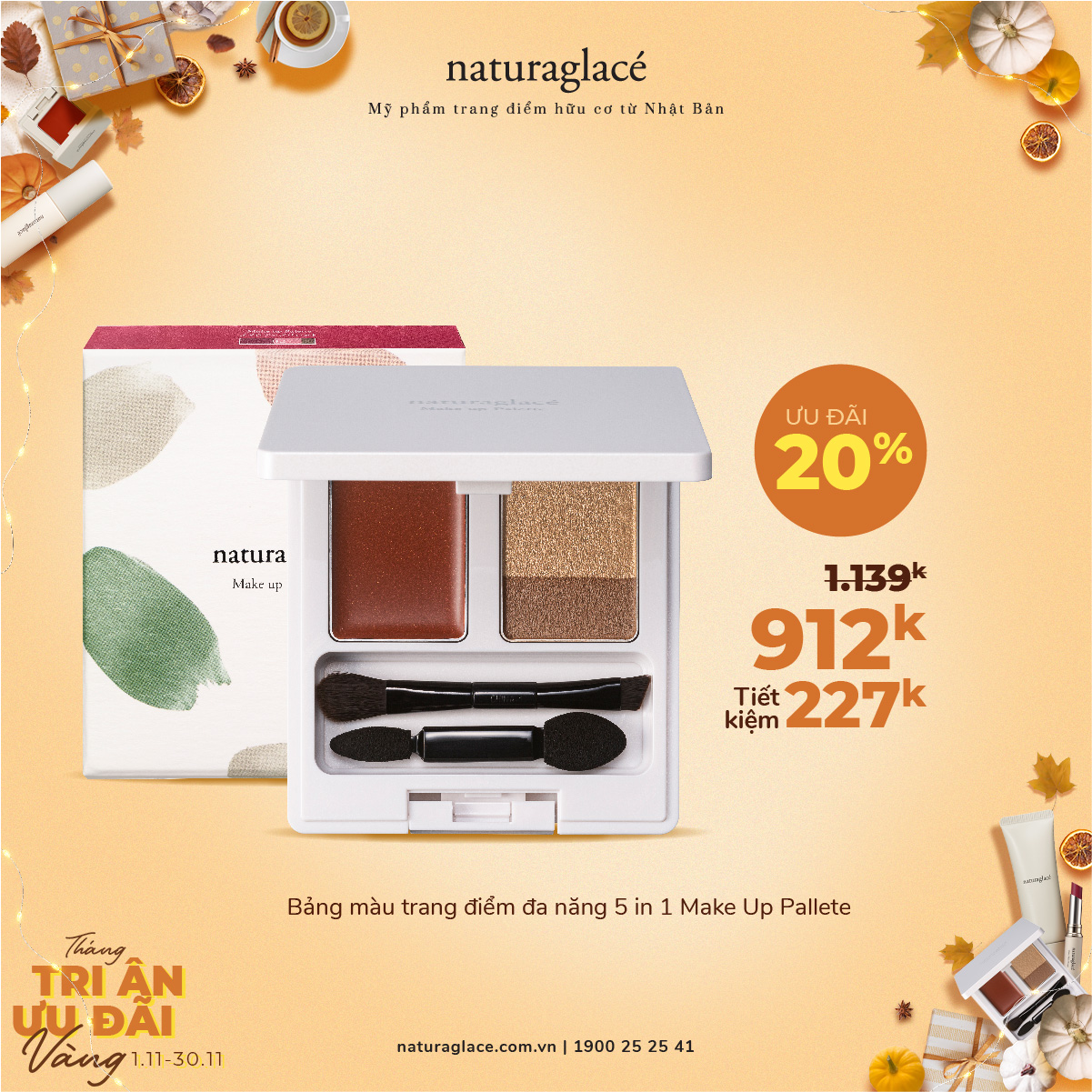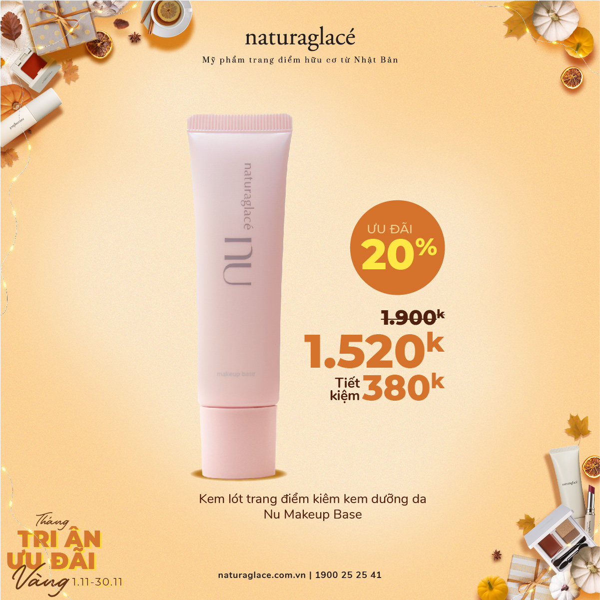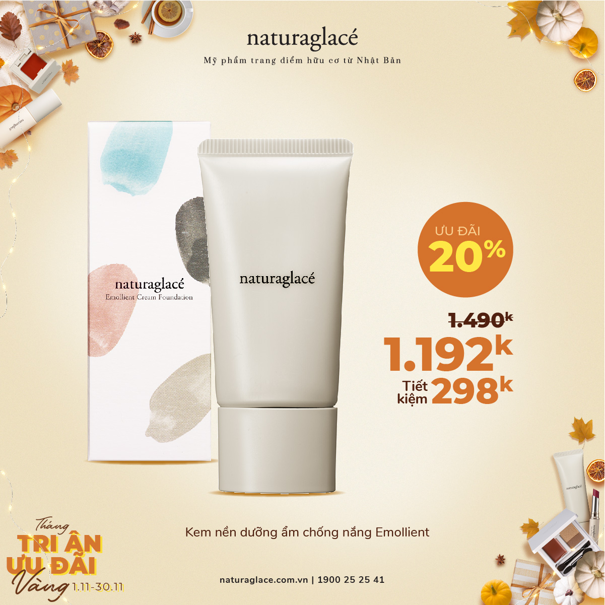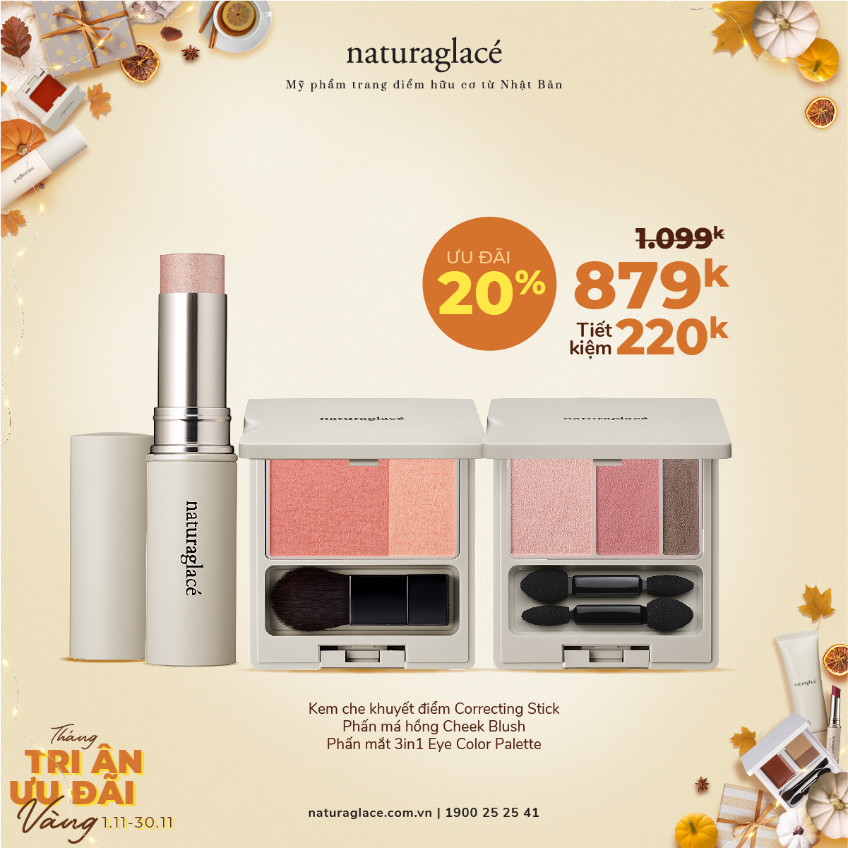 Từ 1/11 -30/11, ưu đãi 20 tất cả mỹ phẩm và tặng quà giá trị kèm theo mỗi hóa đơn mua hàng.