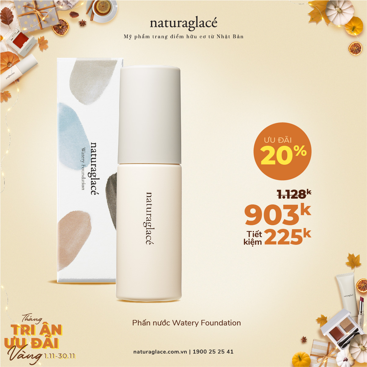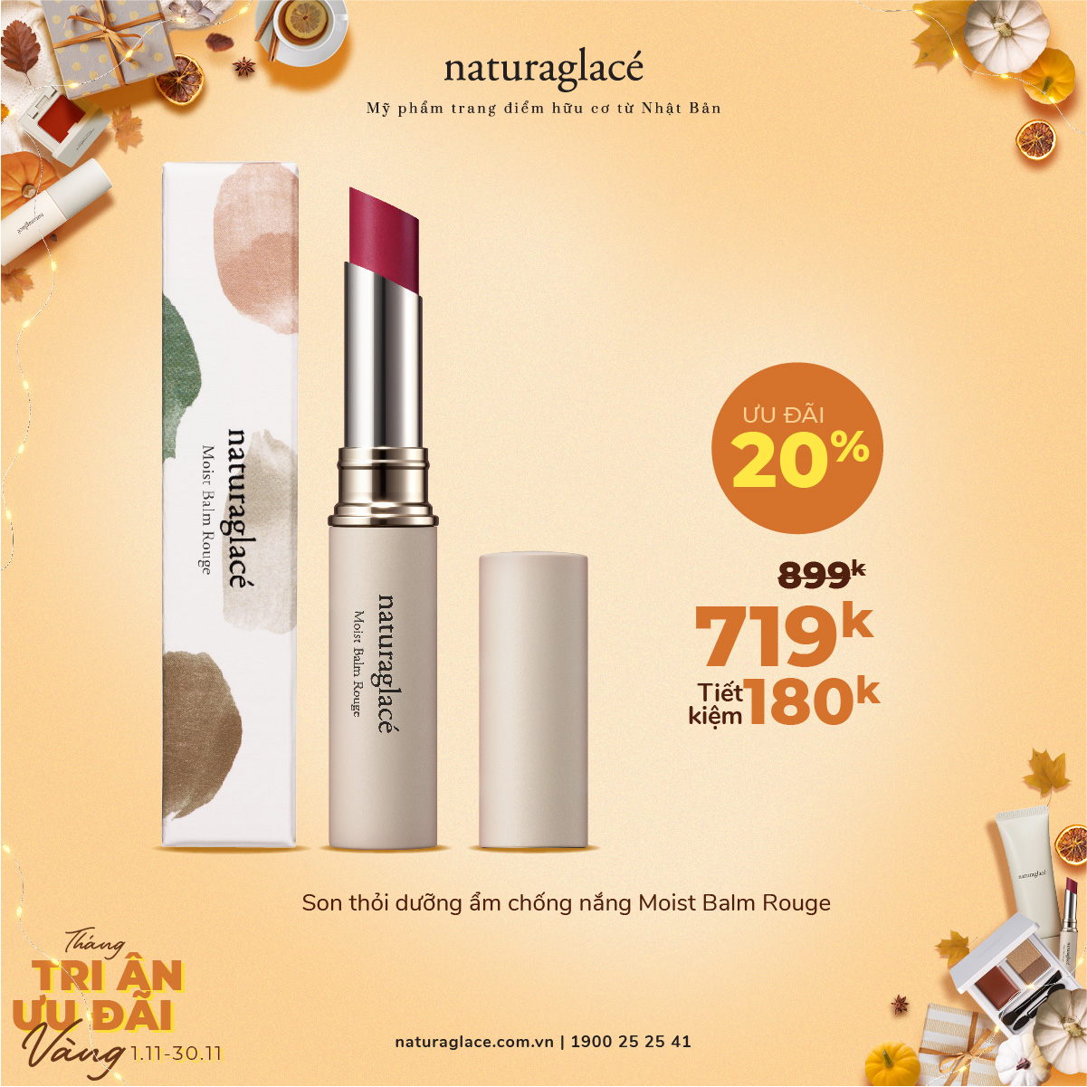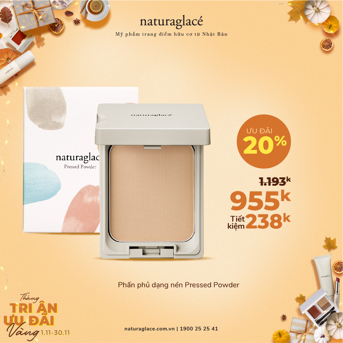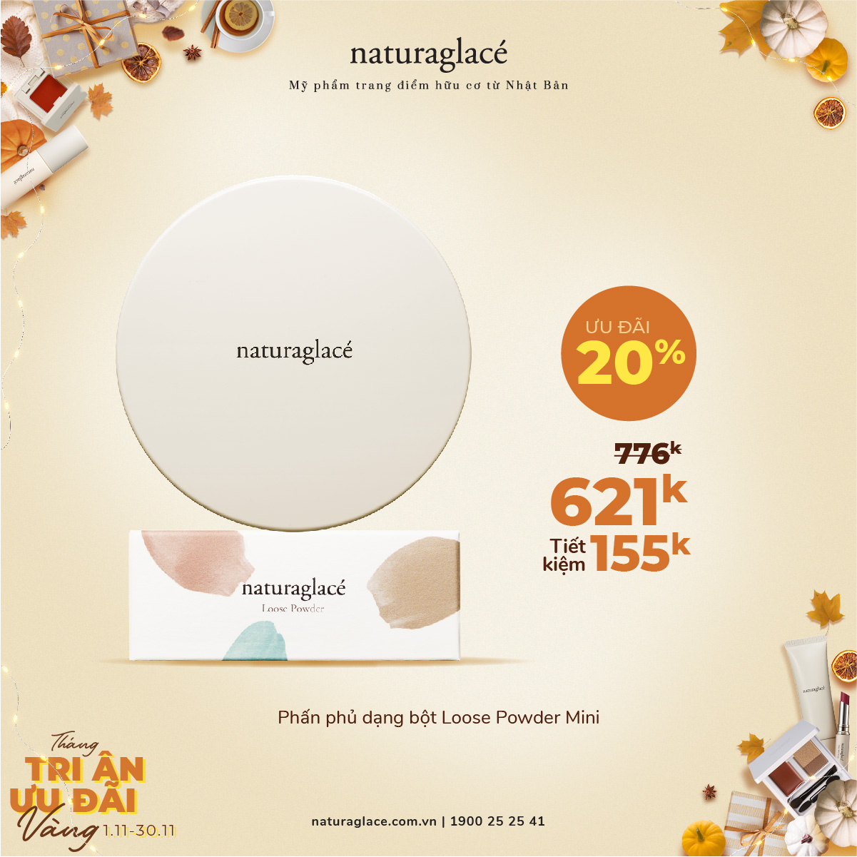 Từ 1/11 -30/11, ưu đãi 20 tất cả mỹ phẩm và tặng quà giá trị kèm theo mỗi hóa đơn mua hàng.