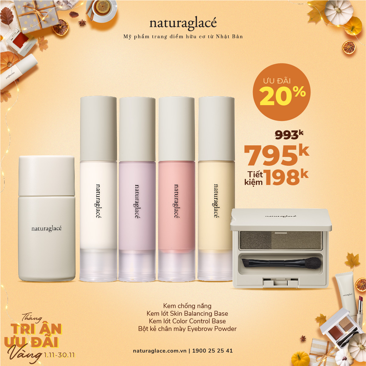 Tháng 11 sang với không khí hân hoan chuẩn bị cho ngày lễ Nhà Giáo Việt Nam 20/11. Hòa chung nhịp rộn ràng, naturaglacé tung loạt ưu đãi vàng để cùng bạn trao gửi những món quà chất lượng và ý nghĩa nhất tới người Cô yêu quý của mình.