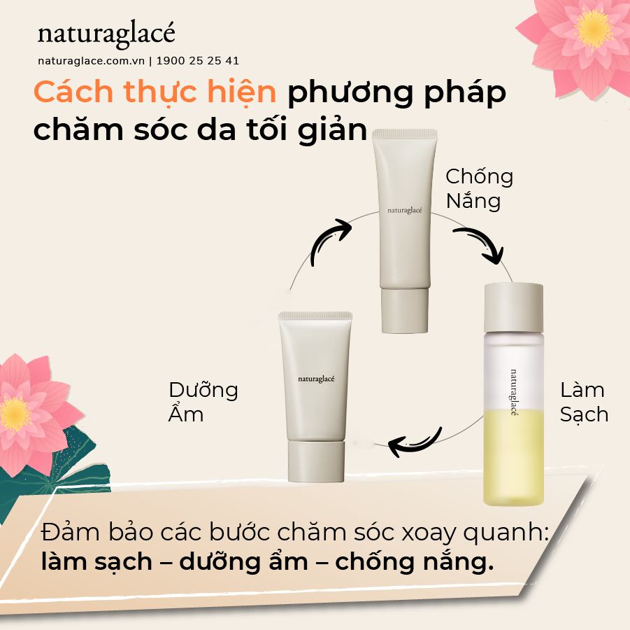 Áp dụng phương pháp này, sản phẩm nào nên loại bỏ? Liệu giảm bớt các bước thì hiệu quả chăm sóc da có bị giảm không? Có phải ai cũng có thể áp dụng phương pháp chăm sóc da này không? Hôm nay hãy cùng naturaglacé giải đáp những thắc mắc liên quan đến phương pháp chăm da tối giản này. Click từng hình để xem chi tiết bạn nhé!